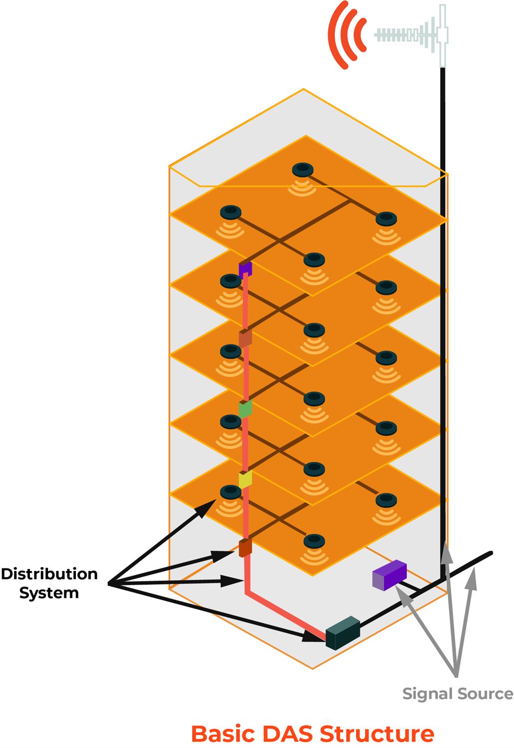 Network operators often turn to DAS to improve indoor internet connectivity for commercial buildings. There are several variants of DAS networks, but (generally speaking), a DAS network receives an internet connection from a public network captured by a primary antenna. The internet signal is then distributed through the building using a system of interconnected antennas. This type of DAS network is called an “Off-Air” system. Off-Air systems can provide additional coverage, but cannot increase network capacity as they are at the mercy of the strength of the connection to the public carrier.